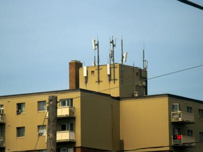 Bell Mobility CDMA setup located on top of an apartment building on the corner of Base Line Rd. and McGregor Ave.
